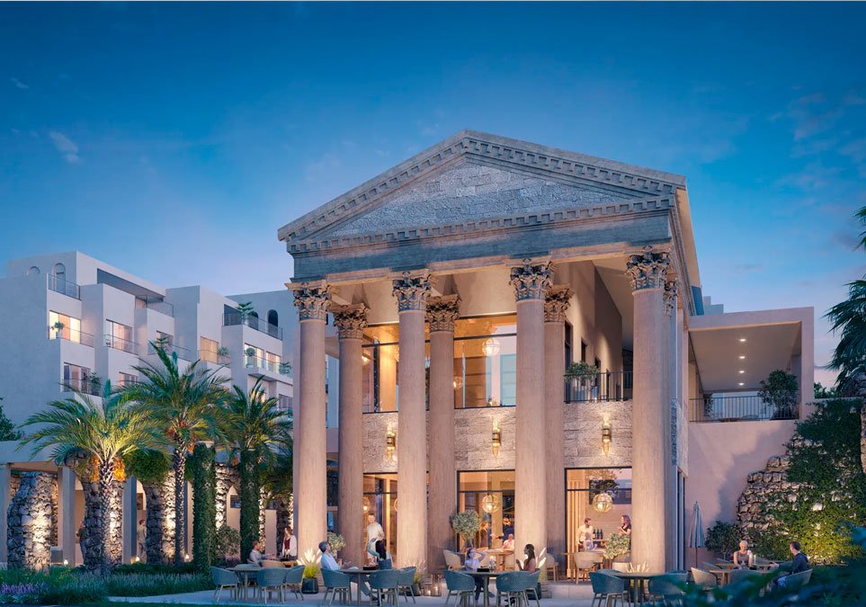 Espacios sofisticados inspirados en villas históricas europeas, rodeados de columnas dóricas y jardines elegantes.